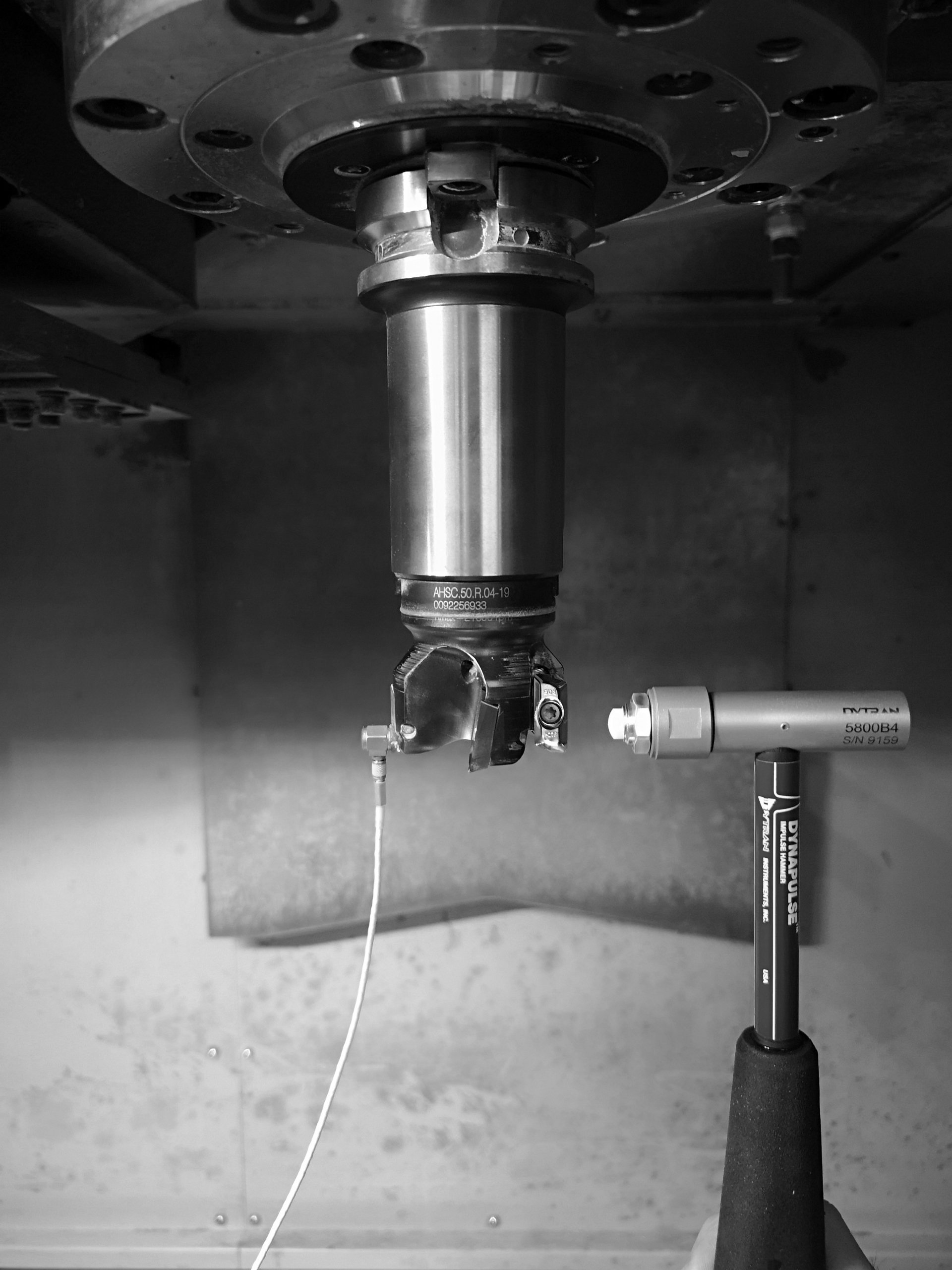 'Tap testing' involves inputting a known impulse force into the cutting tool and measuring the resultant modes of vibration within the tool, holder, spindle and machine structure. Spindle speeds can then be selected which avoid resonant frequencies and enable increased depth of cut and tool life.